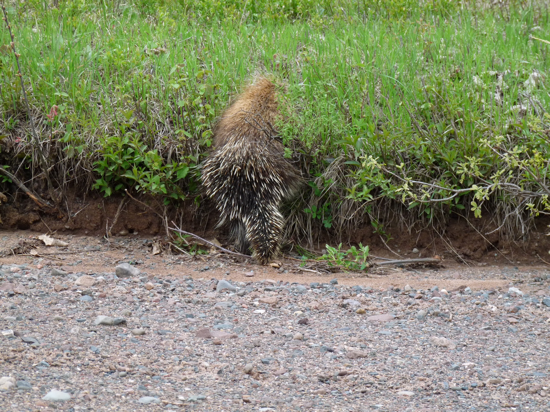 Later in the afternoon we were coming back from the Transfer Station and saw this porcupine walking down the middle of the road. After it stopped to scratch itself, it decided to go the other way.